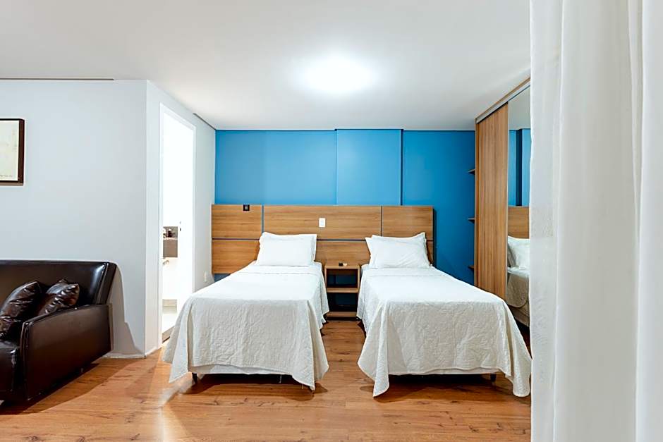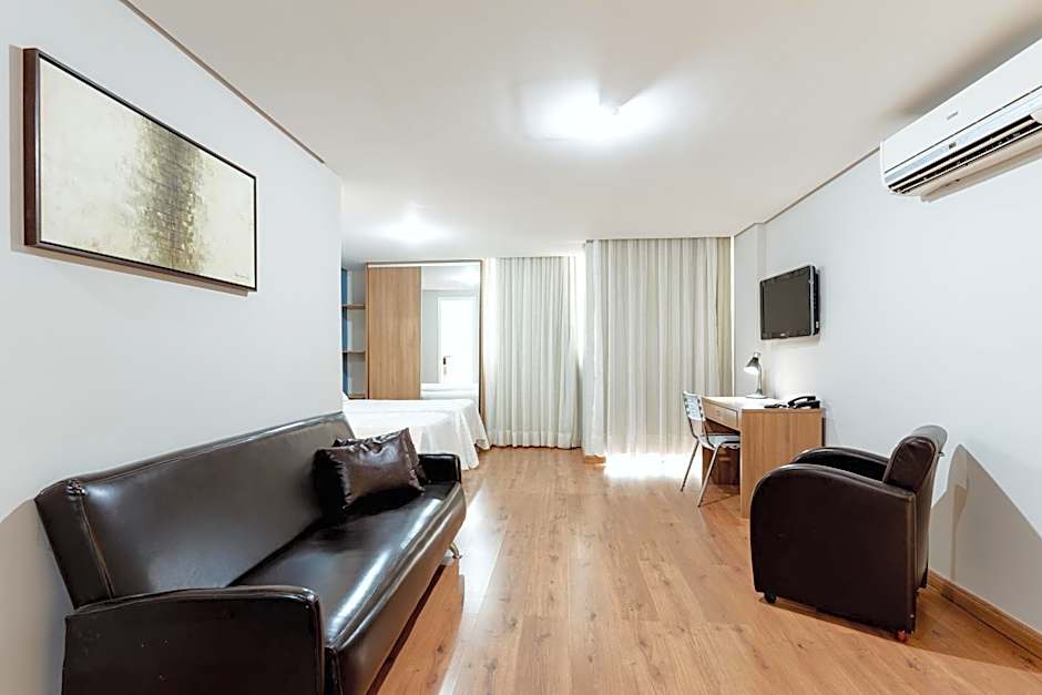 Located between the 5th and 12th floor and offering a view to Oswaldo Aranha Street, this air-conditioned apartment features a 32" LCD TV with 37 cable access, work desk and hypo allergic floors. It has a balcony, bedroom, guest toilet and kitchenette with a mini-bar and microwave. Internet is available.