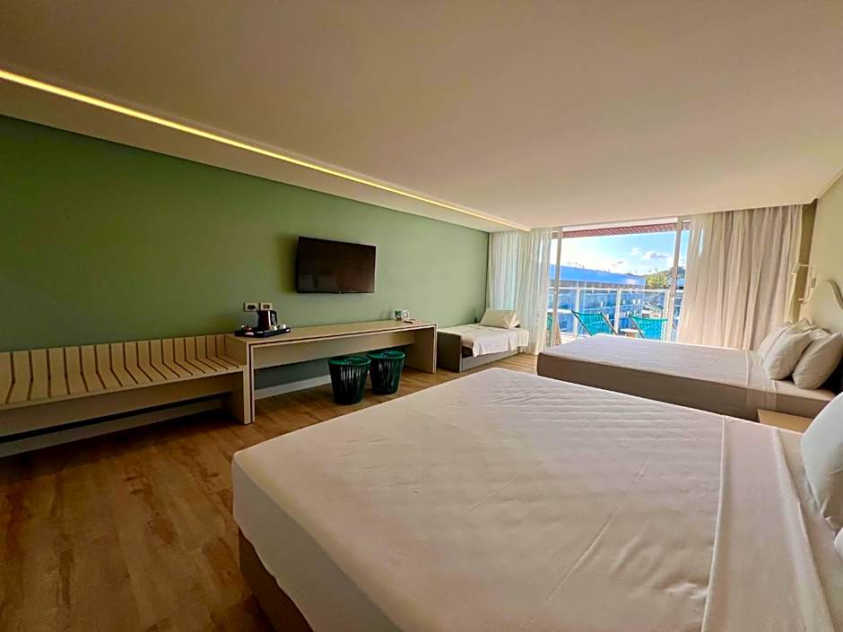Family-friendly highlights include a free Kids' club, a free private beach area, a free outdoor swimming pool, and free private parking. Free Wi-Fi keeps devices happy, while on-site water sports facilities and a waterslide add splashy fun. The resort also features a restaurant, bar, sun deck, terrace, beach umbrellas and chairs, a kid-friendly buffet, and a garden—plus air conditioning throughout for comfort.