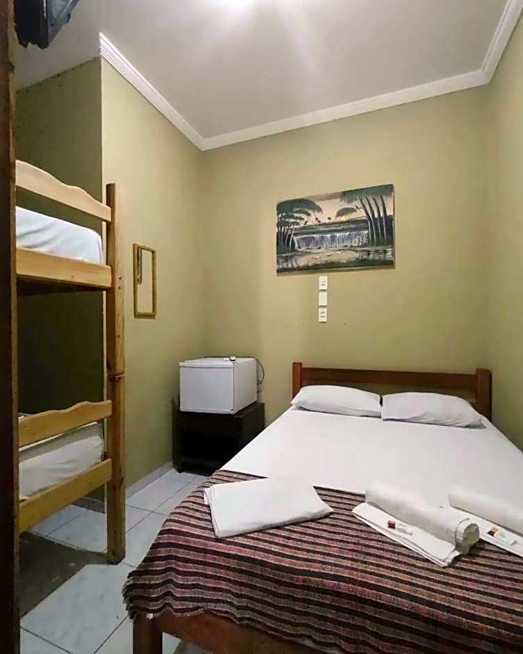 The Pousada Lampião e Maria Bonita hotel offers a variety of room types including suites, quadruple rooms with bunk beds, triple rooms with bunk beds, family suites, and twin rooms. Smoking is not allowed in any of the rooms. The rooms range in size from 86 sqft to 194 sqft. The occupancy varies from accommodating 2 adults and 1 child to 4 adults and 1 child depending on the room type. Bed configurations include double beds, bunk beds, and twin beds.