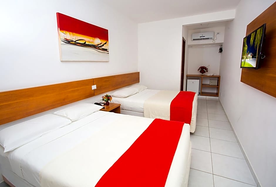 The Monte Pascoal Praia Hotel offers several types of rooms. The Deluxe Quadruple, Deluxe Double, Deluxe Triple, Deluxe Family, Standard Quadruple, Standard Double, and Standard Triple Rooms are available. All rooms have a size of 323 sqft, except for the Standard Quadruple, Standard Double, and Standard Triple Rooms which have a size of 237 sqft. Smoking is not allowed in any of the rooms. The rooms accommodate various numbers of adults and children, ranging from 2 adults and 1 child to 5 adults and 1 child.