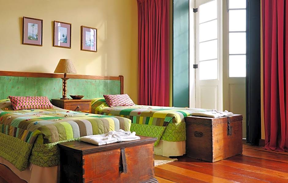 The rooms can be 28 to 40 square yards. Each unit features a differentiated décor, some with 4-poster beds and wooden floors,some with twin single beds and all of them reflecting a particular period in Bahia state´s history. Wome rooms have interior garden views or views of our front view to the square and São Francisco historical church. Amenities encompass air conditioning, TV, free wifi, mini-bar and private bathroom with a hot shower. The rooms located on the upper floor include a small balcony.