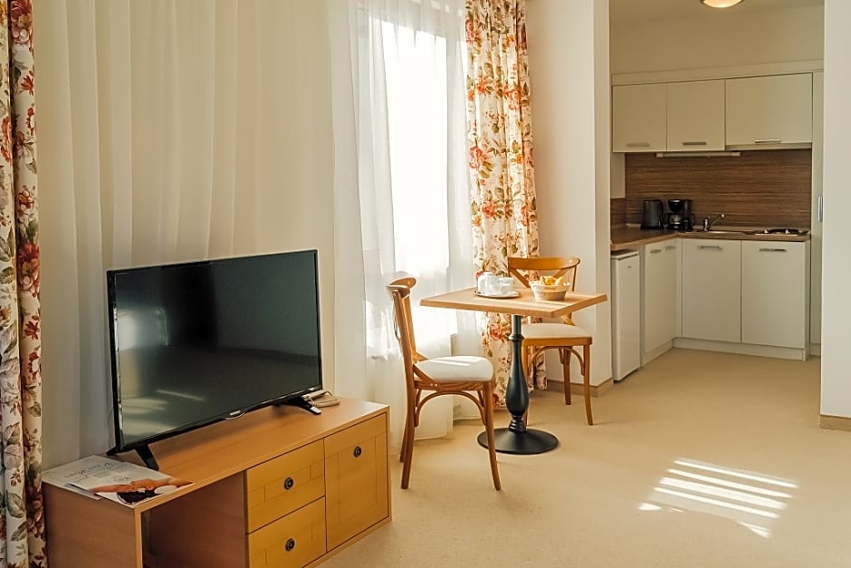 Studio (2 Adults + 1 Child) - free Wellness center. Free access to Wellness center. Elegantly furnished studio with a kitchenette and a balcony. A sofa bed available ideal for children. Providing free toiletries and bathrobes, this studio includes a private bathroom with a shower and slippers. Meals can be prepared in the kitchenette, which comes with a stovetop, a refrigerator and kitchenware. This studio consists of a dining area, a flat-screen TV with cable channels a seating area and a terrace.
