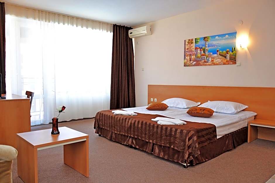 Welcome to Hotel Central, a charming three-star haven nestled just 3mi from the heart of Nesebar in Bulgaria. Perfectly located at Sunny Beach City, this inviting retreat boasts a delightful blend of comfort and convenience, making it a superb choice for both families and solo travelers alike. With a variety of amenities including free Wi-Fi, complimentary private parking, and air conditioning, your stay promises relaxation and ease in a welcoming environment.
