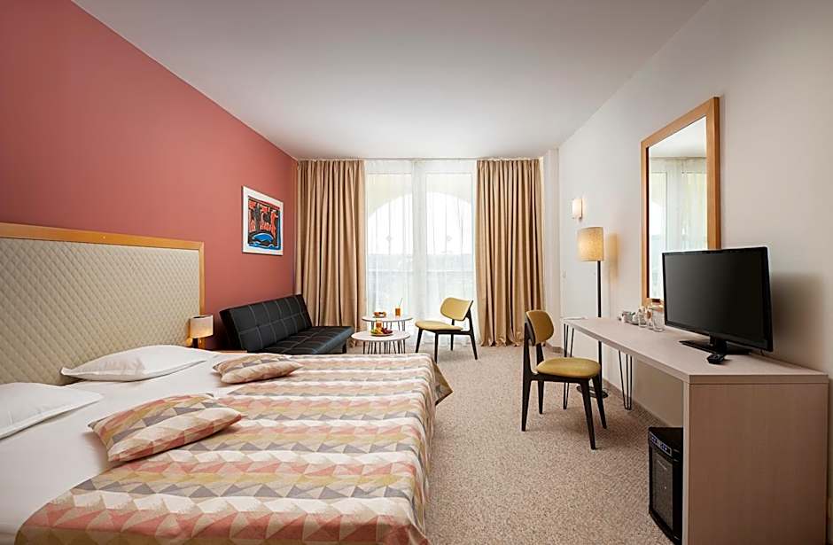 Set right by the beach, the scene opens with a sun deck and bar that invite carefree days by the sea. It’s a breezy, family-friendly base for exploring Nesebar and the Sunny Beach coast, with easy access to the water and the lively waterfront vibe that defines this stretch of Bulgaria’s coast.