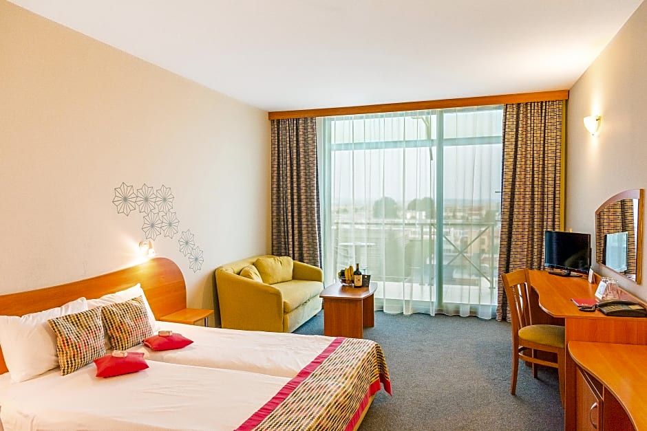 Located in Sunny Beach, Nesebar, this hotel offers easy access to the shore and kid-friendly options such as a playground and live music/performances (free). The setting combines seaside charm with a variety of facilities, including a garden, sun deck, and beach amenities, inviting travelers to enjoy a relaxed escape by the water.
