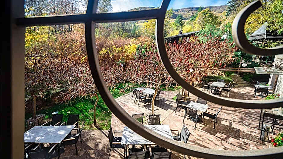 Guest amenities include free on-site parking and free Wi-Fi, an indoor swimming pool (free), a fitness center (free), a spa tub, sauna (free), and a hot tub. Dining and comfort are covered with a restaurant and bar, plus air conditioning, free toiletries, non-smoking rooms, a terrace, balcony with mountain or garden views, a kitchenette, and a sun deck.