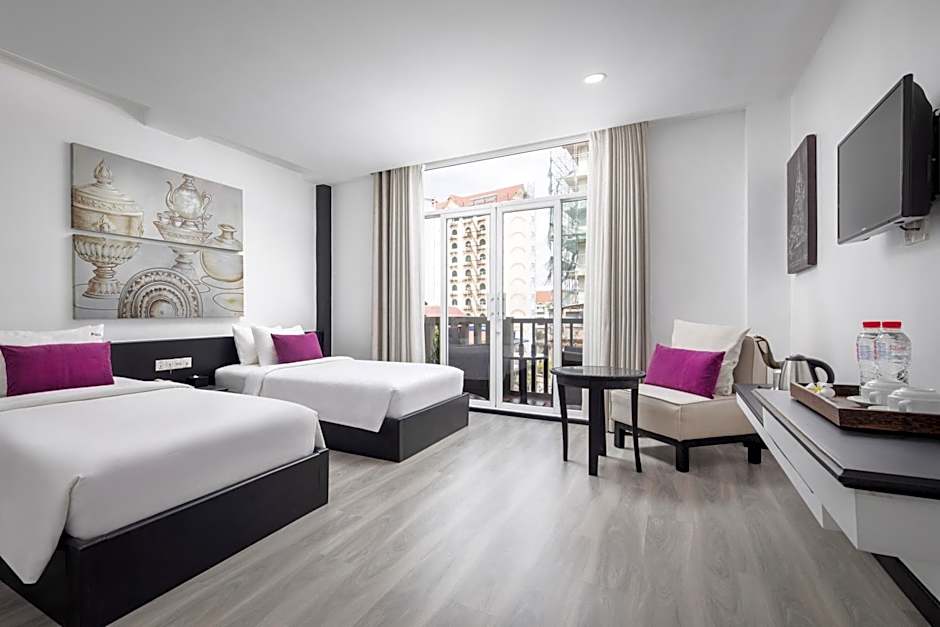 This stylish air-conditioned room comes with a flat-screen TV and a mini-bar. Private bathrooms include shower facilities. A DVD player is available on request. Larger room features a private balcony. Room features 2 single beds.