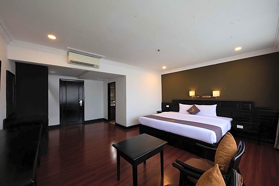 The Azumaya Hotel Phnom Penh offers Deluxe Double Rooms that can accommodate 2 adults and 1 child. These rooms feature a King size bed, are non-smoking, and have a room size of 248 sqft.