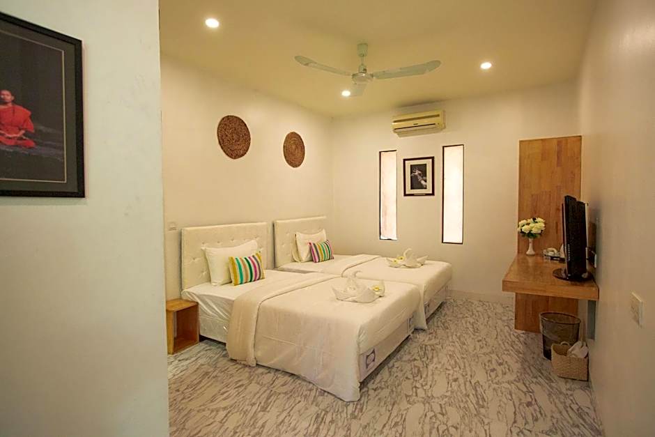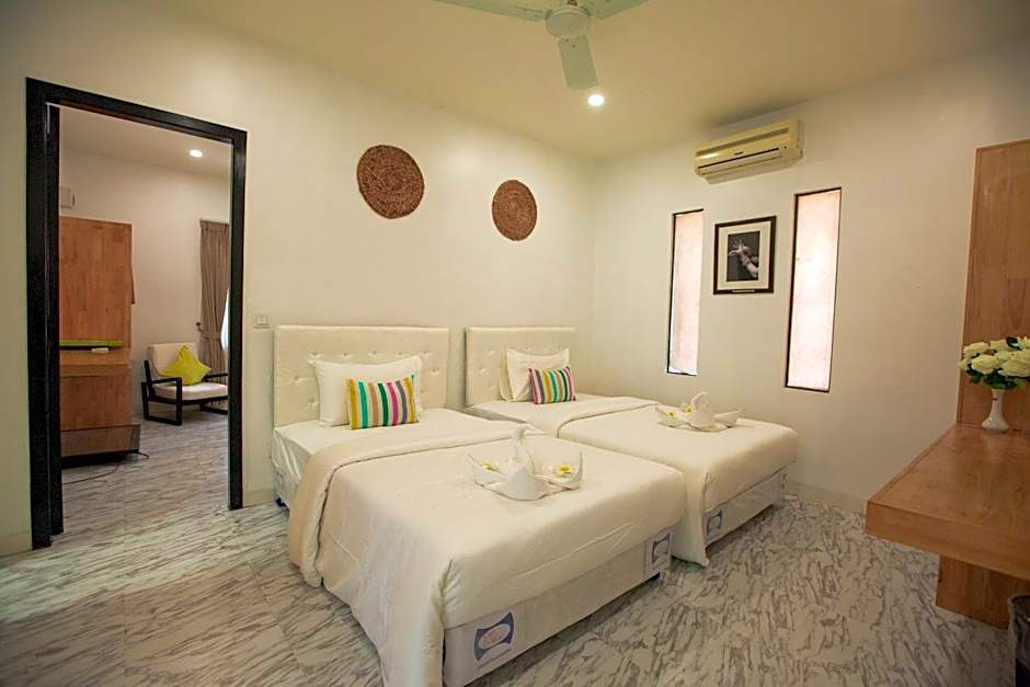 At Bamboo9 Boutique hotel, one of the room types available is the Deluxe Family Suite. This suite is a family room with a size of 484 sqft. Smoking is not allowed in this room. It can accommodate 4 adults and has 2 twin beds and 1 king-size bed.