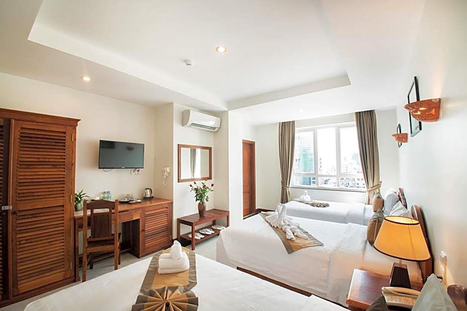 Public transportation is within easy reach, making it simple to discover nearby attractions like the majestic Royal Palace, the iconic Silver Pagoda, and the lively markets. Plus, after a day of adventures, you can return to the comfort and security of the Relax Hotel and catch stunning city views from your room. Choose from a variety of configurations, including cozy Superior and spacious Deluxe options, all designed with your comfort in mind. Whether you're traveling as a couple or with family, there’s the perfect space waiting for you. Book your stay today, and get ready for cherished memories in the charming capital of Cambodia!