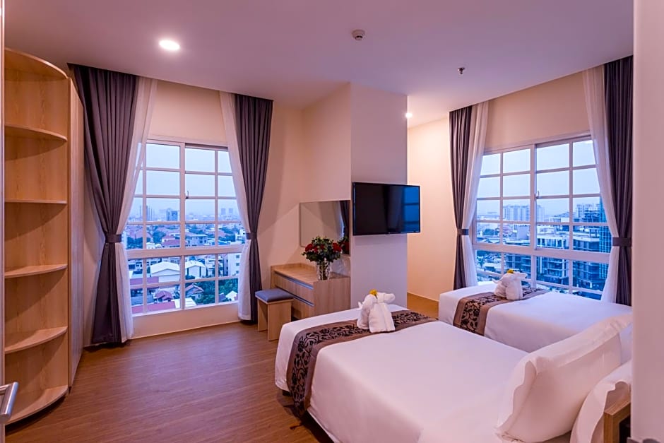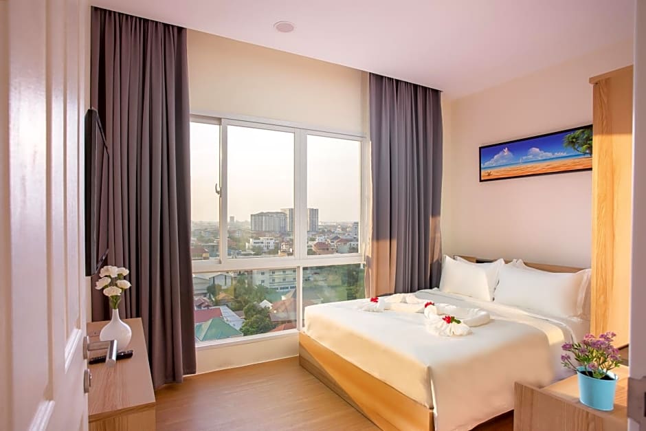 TK VIEW HOTEL & APARTMENT blends Phnom Penh convenience with easy-going charm. On-site highlights include free parking, an outdoor swimming pool, free Wifi, and a free fitness center, with shuttle service available for an extra charge. Guests can soak up the sun on a sun deck or terrace, and a private entrance plus views from upper floors add a touch of privacy and drama to the stay.