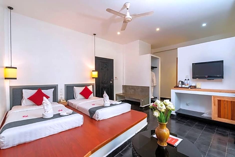 Apsara Greenland Boutique Villa & Resort is a playful Bed and Breakfast in Siem Reap, Cambodia. The boutique vibe and warm hospitality set the tone for a relaxing escape, located about 1,2mi from Siem Reap city center, making temple hopping and market strolls easily doable.