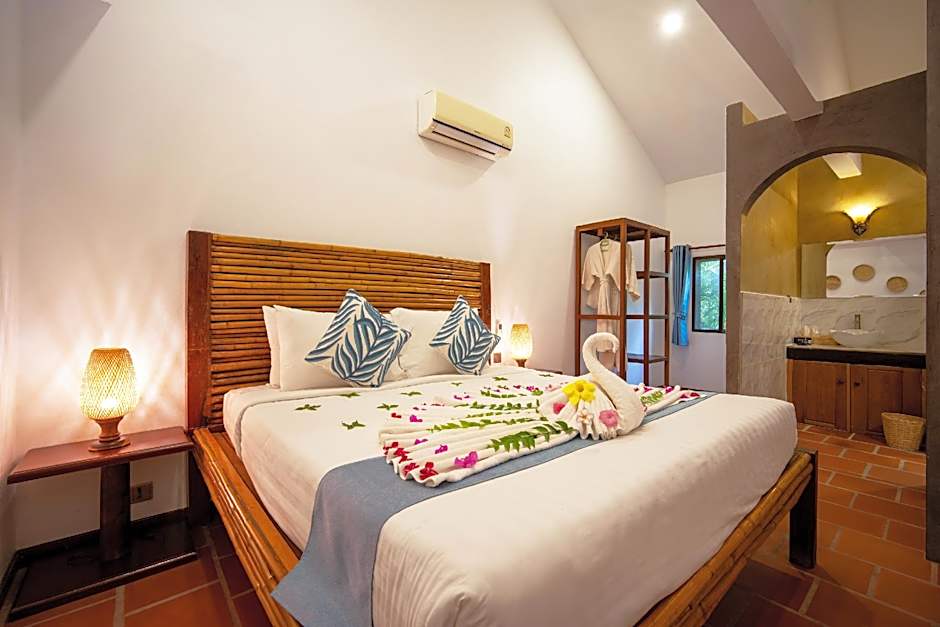 The Authentic Khmer Village Resort offers a variety of room types including bungalows and villas. All rooms are non-smoking. Occupancy ranges from 2 adults in the One Bedroom Private Jacuzzi Bungalow to 6 adults in the 3-Bedroom Private Pool Villa in the Garden. Bed sizes vary from 1 x King size bed to 3 x King size bed. Room sizes range from 452 sqft to 1615 sqft.