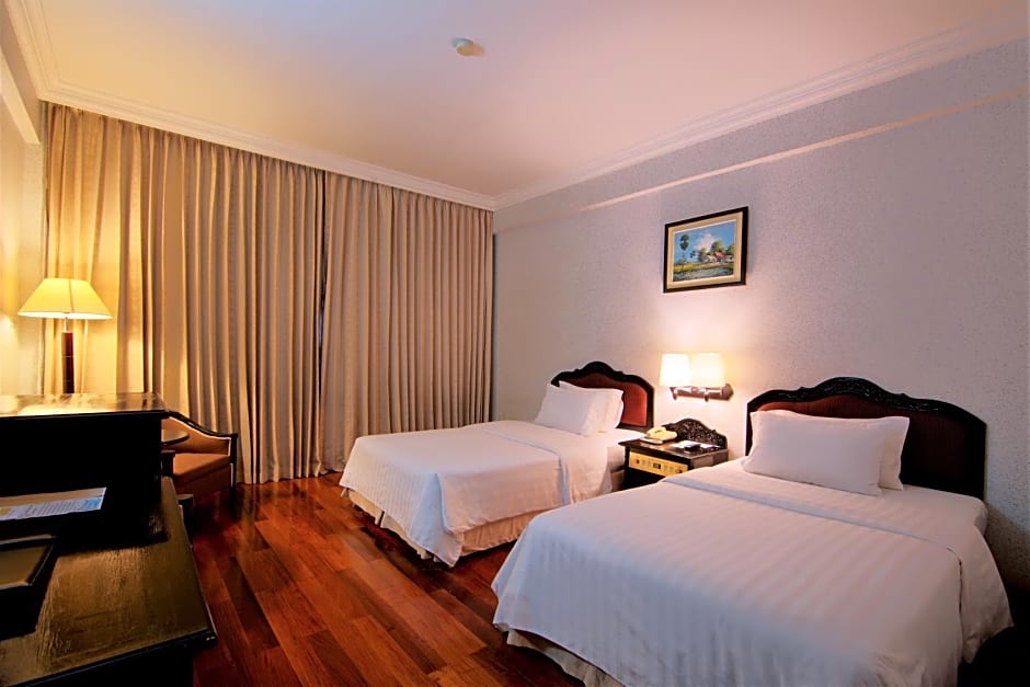 This grand suite is located in the annex building and feature a private balcony that opens up to views of the swimming pool or tropical garden. Offering a living room and separate seating area with 2 balconies. It is fitted with a cable TV, mini-bar and an en suite 2 bathroom with a separate bathtub and shower. Benefits include: - Complimentary welcome drink and cold towel upon arrival - Daily buffet breakfast - Airport service is available by charge (please contact use for service) - Complimentary access to swimming pool, poolside spa bath and fitness center - 20% discount on all food and beverage outlets (not applicable with other offers) - 20% discount on all massages (not applicable with other offers) - Early Check in by 12:00 (Subject to availability) - Late Check out by 14:00 (Subject to availability) - Room Valet Service