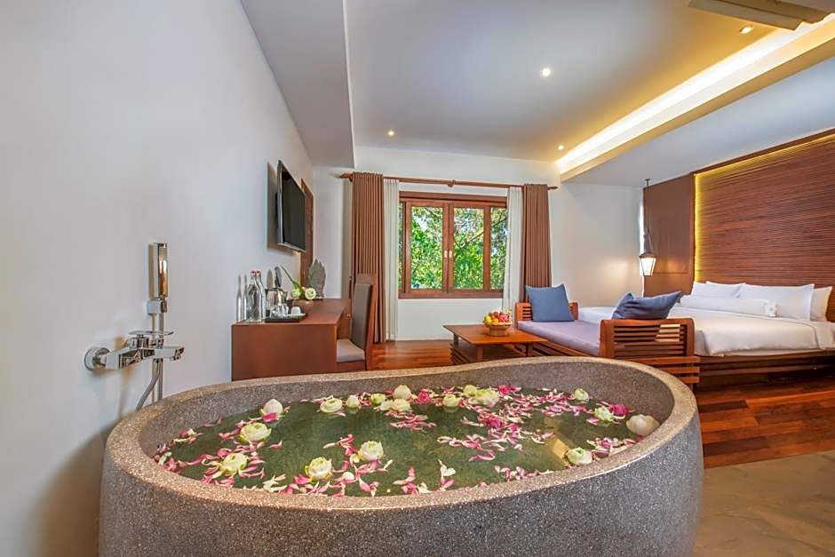 A varied lineup of accommodations includes options such as Villa, Suite with Garden View and Balcony (and Pool Access), Duplex Suite with Balcony, Deluxe configurations, and Family Interconnecting Suites, among others. Garden-friendly spaces and patios offer quiet moments after exploring local sights, with village surroundings nearby to enhance the sense of immersion.