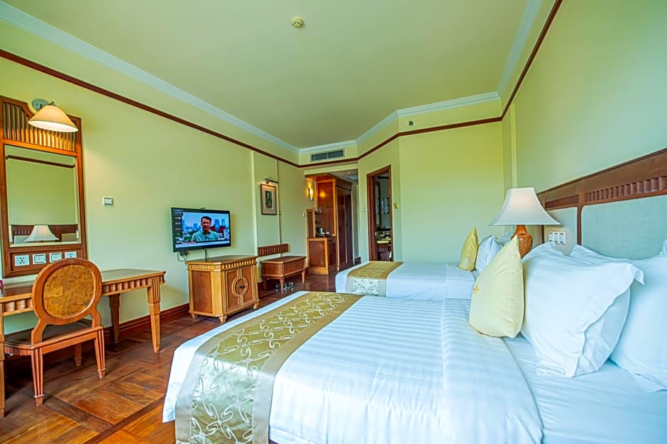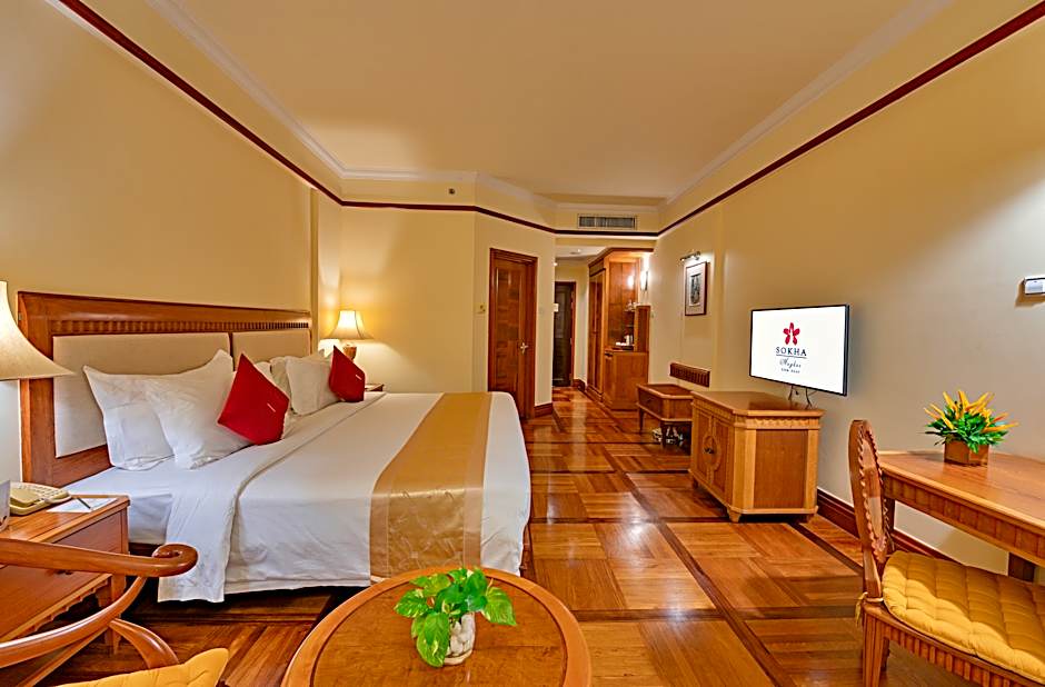 Offers delightful views of either Sivatha Street or the traditional Khmer temple. Room Benefits Included: High-speed Internet Wi-Fi, Free access to the swimming pool, Free access to the Fitness Center, 10% Off on F&B and Laundry, 10% Off on spa (Effective from 15 Oct 2023), Welcome drink and cold towel upon arrival, Tea and instant coffee in the room, Complimentary early check-in and late check-out services (subject to room availability).
