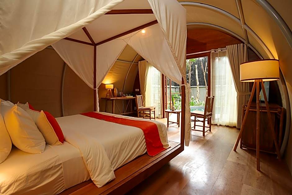 This air-conditioned suite features a terrace and open pavilion that offers views and a private pool. The seating area is fitted with a flat-screen cable TV, a mini-bar and a sofa. The en suite open-air bathroom is equipped with a shower and a bath. A hairdryer and free toiletries are also included. This room features a king-size bed.