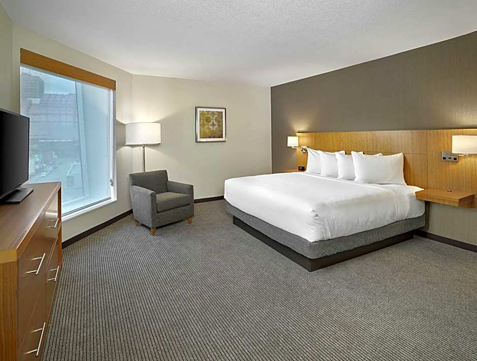 At the end of the day, retreat to your impeccably designed accommodations. With a range of suites available, including cozy options with kitchenettes and beautiful river views, you’ll discover the perfect sanctuary for relaxation. Immerse yourself in comfort with plush bedding and modern conveniences that ensure a laid-back, rejuvenating stay. Whether you're traveling solo, as a couple, or with the whole family, the DoubleTree by Hilton Edmonton Downtown provides an inviting atmosphere that guarantees your adventure in Alberta's capital will be one for the books!