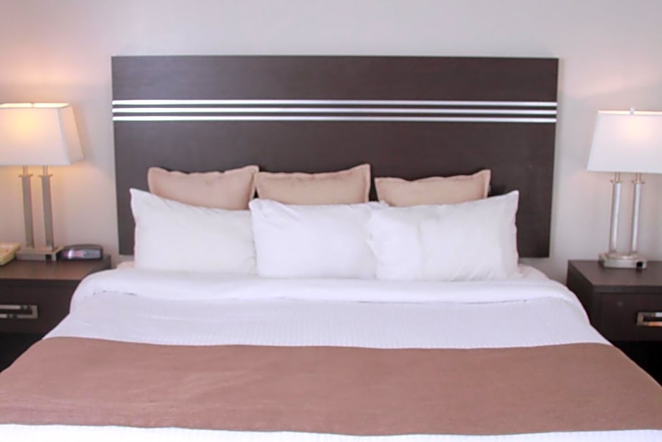 The hotel offers a variety of rooms including King Rooms, Queen Rooms, Queen Suites with Three Queen Beds, and Queen Rooms with Two Queen Beds. All rooms are non-smoking and have different bed configurations and room sizes. Occupancies range from 2 adults and 1 child to 6 adults and 4 children.