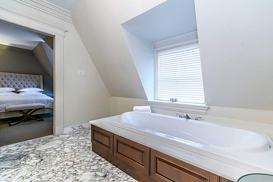 All guest rooms feature an private bathroom with heated marble floors and a separate marble/glass shower. The spacious bedrooms feature a queen bed, designer furnishings, boutique linens and original artwork. Additional room amenities include free WiFi, a fireplace and flat-screen TV.