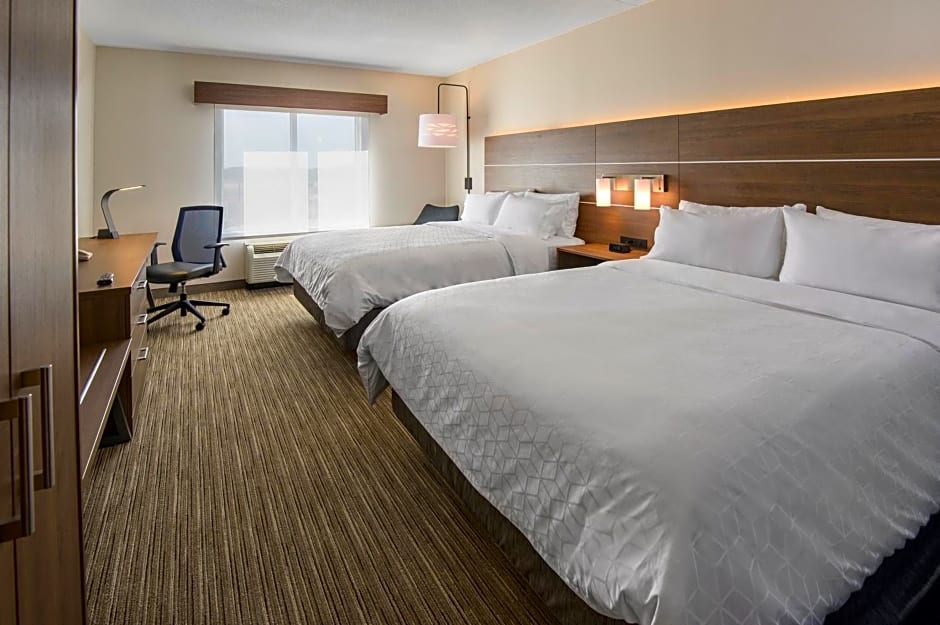 The Holiday Inn Express Hotel & Suites North Bay offers a variety of room types. These include Queen Rooms with Two Queen Beds and a Sofa Bed, King Rooms, Queen Suites with Two Queen Beds, Standard Rooms with a Queen Bed, Queen Rooms with Two Queen Beds and Wheelchair Access, and King Suites. Smoking is not allowed in any of the rooms. The occupancy varies depending on the room type, with options accommodating between 2 and 6 adults, as well as 1 to 4 children. Bed sizes range from Queen to King, and some rooms also offer a sofa bed.