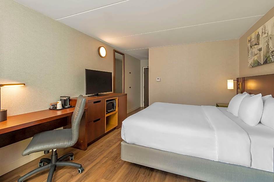 The Comfort Inn hotel offers a variety of room types including King Rooms with a sofa-bed, Superior King Rooms with a courtyard view, Queen Rooms with two Queen beds, Double Rooms with two Double beds, and Queen Rooms with a disability access option. All rooms are non-smoking, and the sizes range from 215 sqft to 248 sqft. The rooms can accommodate 2 to 4 adults, and some rooms also have the option for pets.