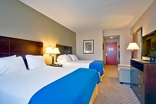 The Holiday Inn Express Sault Ste Marie offers Queen Rooms with Two Queen Beds, Standard Double or King Rooms, King Rooms, and Superior Suites. All rooms have a size of 280 sqft, and smoking is not allowed. The Queen Rooms and Standard Double or King Rooms accommodate 2 adults and 1 child, with the option of 2 queen beds or 1 king bed. The Superior Suite has a larger size of 592 sqft and can accommodate 4 adults and 3 children, with a double bed.