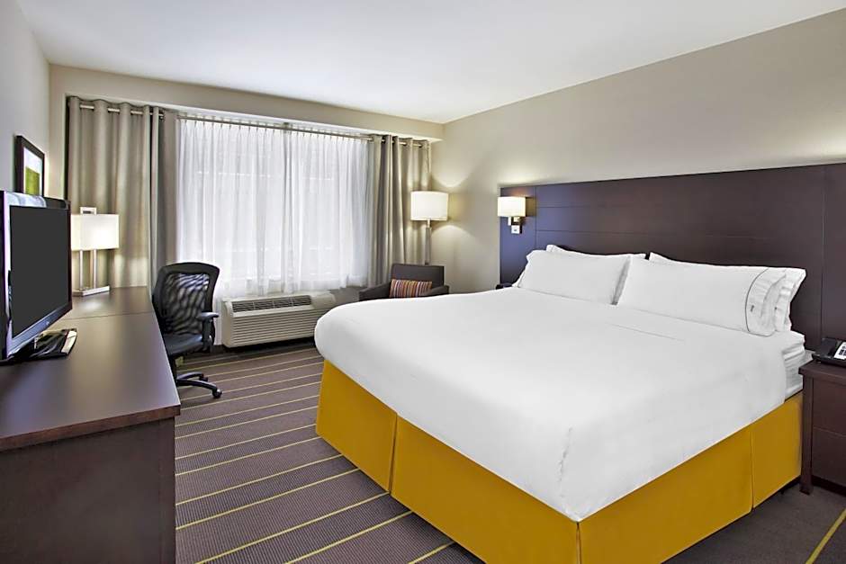 Guests at the Holiday Inn Express can enjoy their time at the hotel by taking advantage of the indoor swimming pool, which is available all year round. The pool is heated and has a shallow end, making it suitable for both leisurely swims and family activities. Additionally, there is a sauna for relaxation and unwinding.