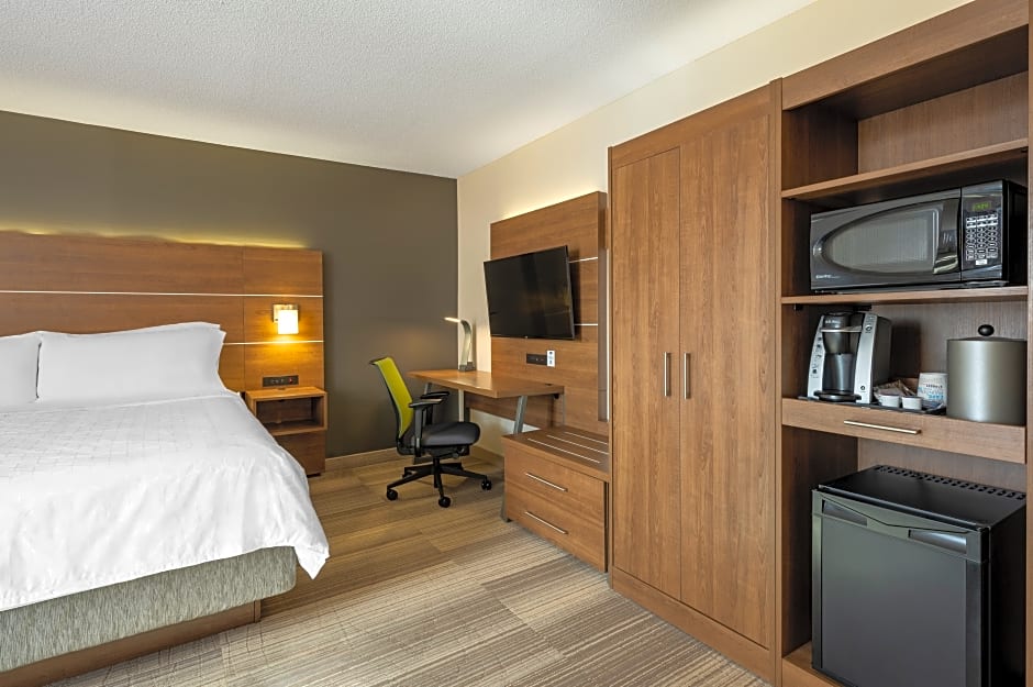 The Holiday Inn Express Toronto Downtown offers a variety of room options including Double Rooms, King Rooms, Executive King Rooms, Queen Rooms with Disability Access, and Queen Rooms with Two Queen Beds. All rooms have a size of either 215 or 258 sqft and do not allow smoking. The occupancy varies from 2 adults and 1 child to 4 adults and 3 children, depending on the room type. Bed sizes range from Double beds to Queen or King size beds.