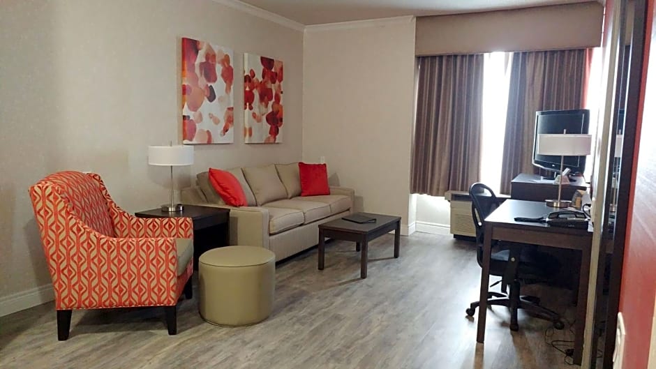 Located on the main floor, this disability accessible suite offers a sofa bed and a kitchenette including a mini fridge, microwave and range. The bathroom has a roll-in shower, along with no under cabinetry throughout the suite, and all switches are placed lower on the walls.