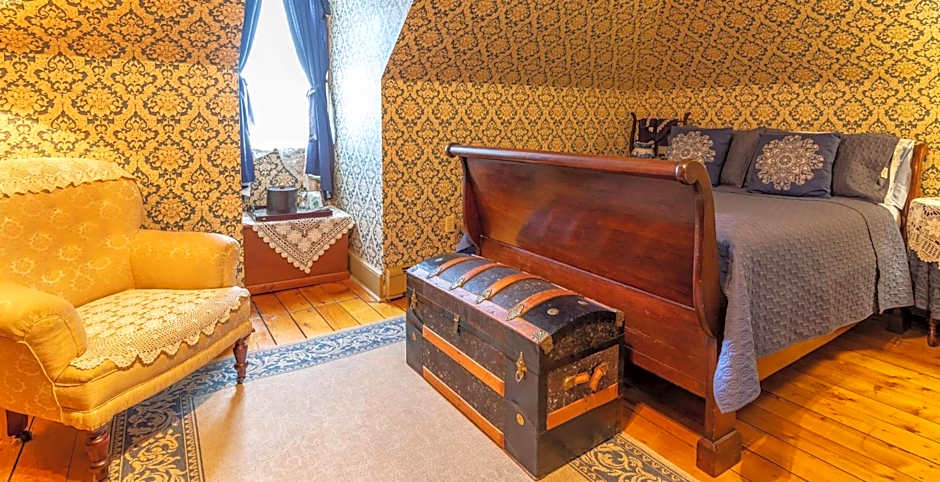 This room features a private bathroom with a combination tub and shower. Please note that this room type is only accessible by stairs and is located on the 3rd floor.