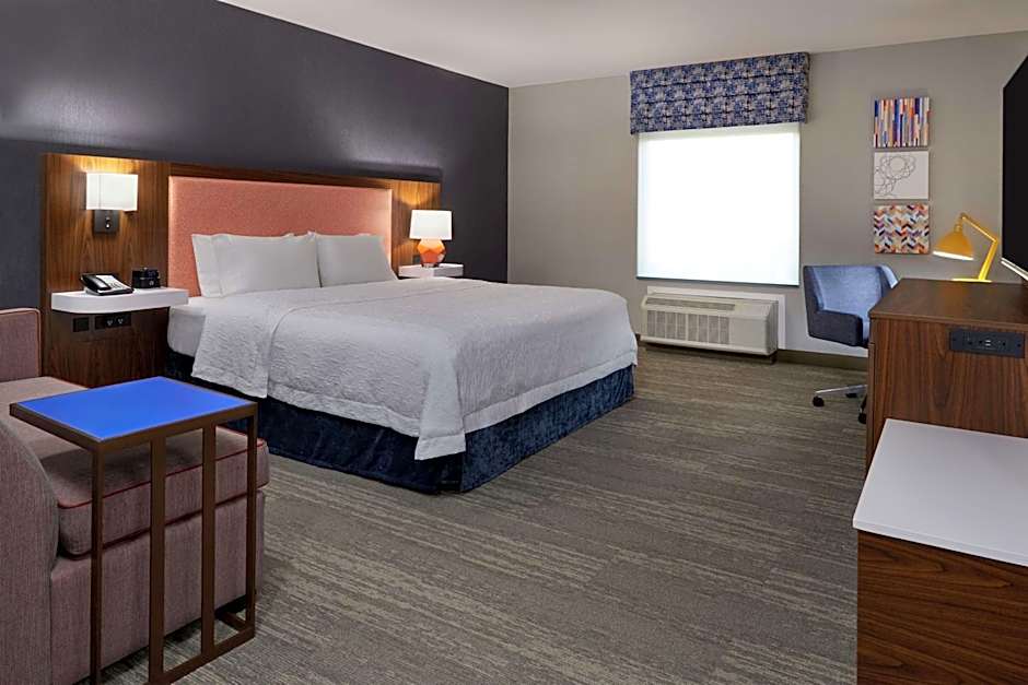 This spacious non-smoking room features king-sized clean and fresh Hampton bed®, a comfortable sofa bed , and a 55-inch TV. Catch up on work at the large desk, or surf the web with free WiFi access.
