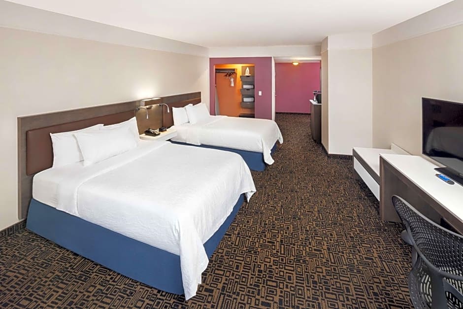 Hilton Garden Inn Montreal Centre-Ville offers various room types including Queen Room with Two Queen Beds, One-Bedroom King Suite, King Room - Disability Access, and King Room. Smoking is not allowed in all rooms. Bed sizes range from Queen size to King size. The rooms can accommodate either 2 adults or 4 adults.