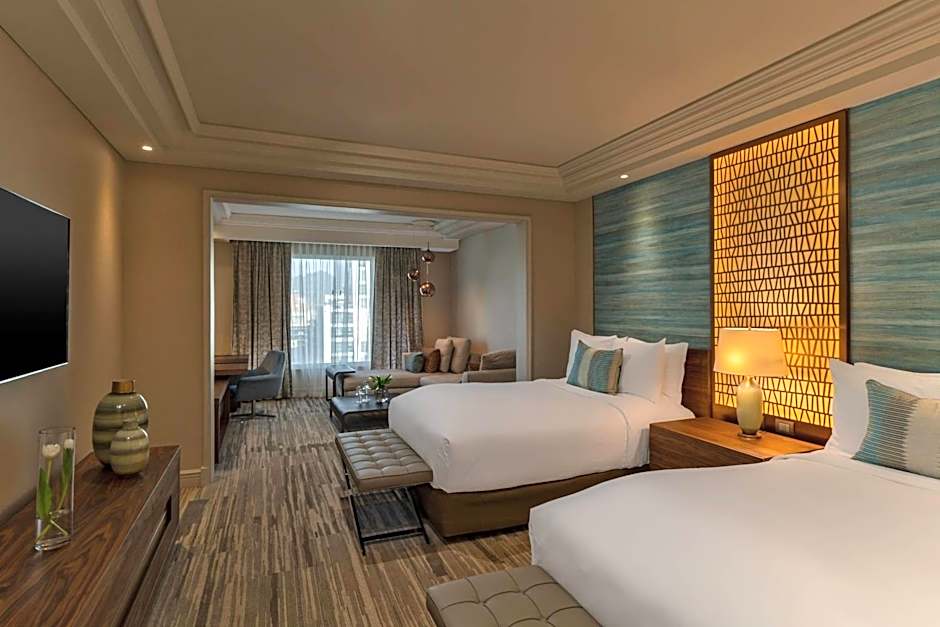 The Ritz-Carlton, Santiago offers a variety of rooms including Deluxe Double Rooms with Two Double Beds, Junior Suites, Deluxe Rooms with 1 King Bed and City View, Club Level Guest Rooms with 1 King Bed, Club Level Double Rooms with Two Double Beds, and King Executive Suites. All rooms are non-smoking and accommodate 2 adults and 1 child. Bed sizes range from 2 Double beds to 1 King size bed. Rooms sizes vary between 431 sqft and 646 sqft.