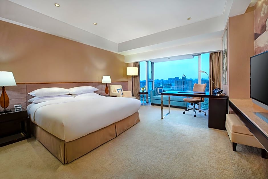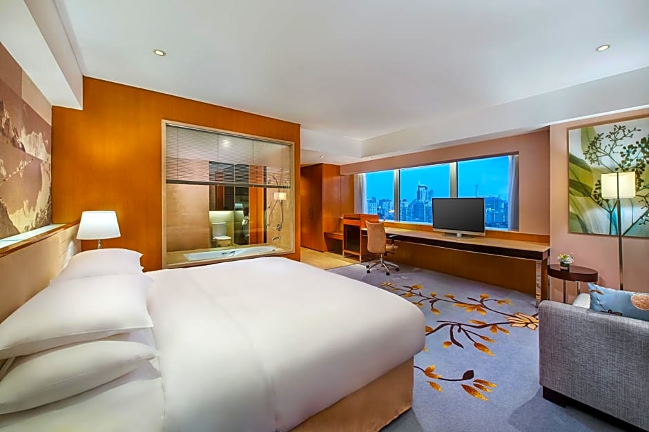 40SQM high floor room with 2 Double Beds, daily access to Club Lounge for breakfast, afternoon tean and happy hour for up to 2 adults, daily 5 soft drinks in mini-bar.Sepearte bathtub and walkin shower room. Design is feature with Yunnan ethnic elements. Located on Floor 24-25, connecting to suite.