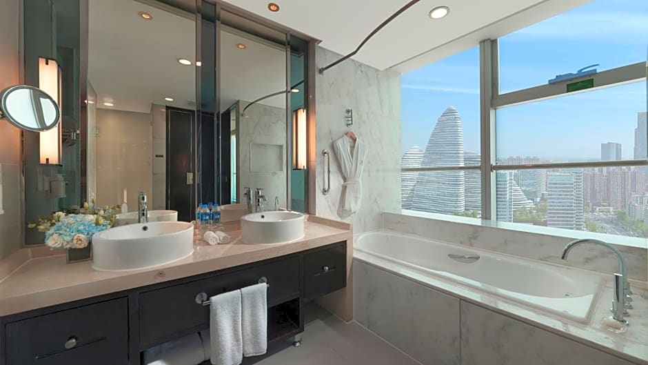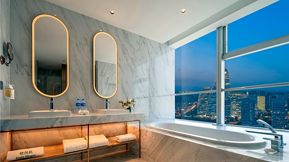 This suite offers a hot tub. Providing free toiletries and bathrobes, this suite includes a private bathroom with a bath, a shower and a hairdryer. The spacious air-conditioned suite provides a flat-screen TV with cable channels, soundproof walls, a mini-bar, executive lounge access as well as city views. The unit offers 1 bed.