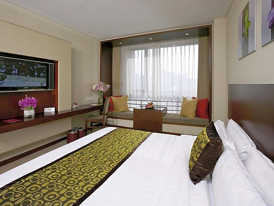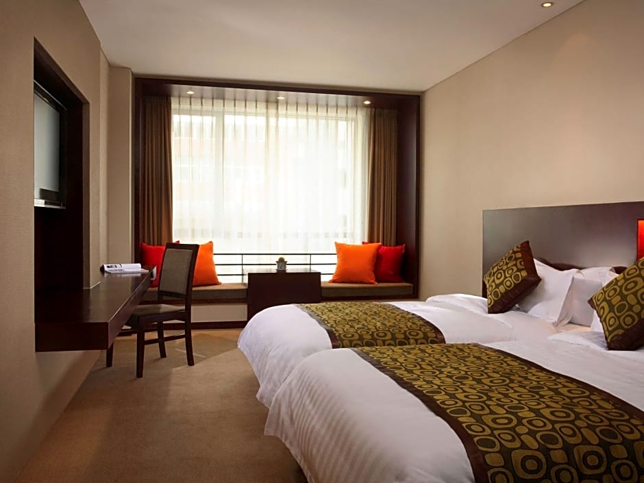 The Mercure Wanshang Beijing Hotel offers a variety of room types including Standard Twin Rooms, Deluxe Double Rooms, and Superior Twin Rooms. These rooms accommodate 2 adults and 1 child, are non-smoking, and feature either twin beds or a king-size bed. The room sizes range from 301 sqft to 592 sqft.