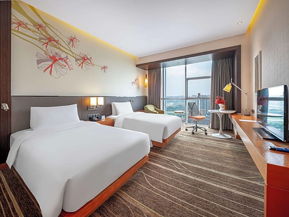 Food lovers can sample a world tour at the on-site dining scene. 花荟·味 blends American, Chinese, British, French, Indonesian, Italian, pizza, seafood, and grill favorites in a setting that’s FamilyFriendly, Modern, and Romantic. For a quick, modern Chinese fix, 麺谈 serves up Chinese cuisine in a sleek, Modern space. 花荟··品 offers International flavors in a similarly welcoming atmosphere.