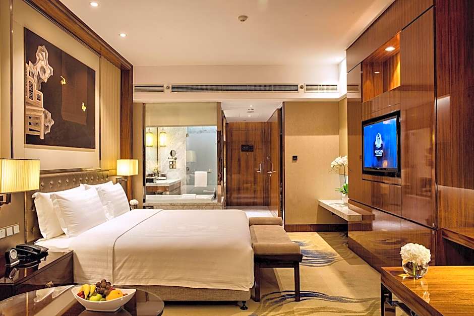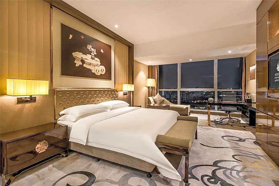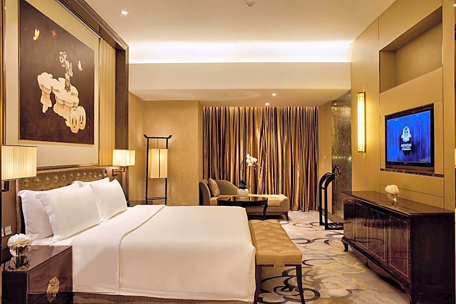 The Minyoun Room interior decoration combines simple European styles with luxury Chinese styles, this room is located on floors 30-32. The room provides a private bathroom with a separate shower cubicle and a bathtub, high-speed internet access and full Wi-Fi coverage, a 42-Inch LED TV set (available with CNN, HBO, ESPN, DISCOVERY, Phenix Satellite TV, etc.), a mini-bar, an in-room safe deposit box, voice messaging system, a menu of 8 kinds of special pillows and 4 kinds of special mattresses, as well as 24-hour butler service.