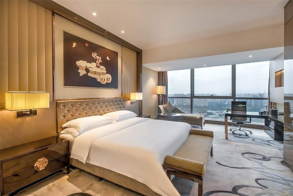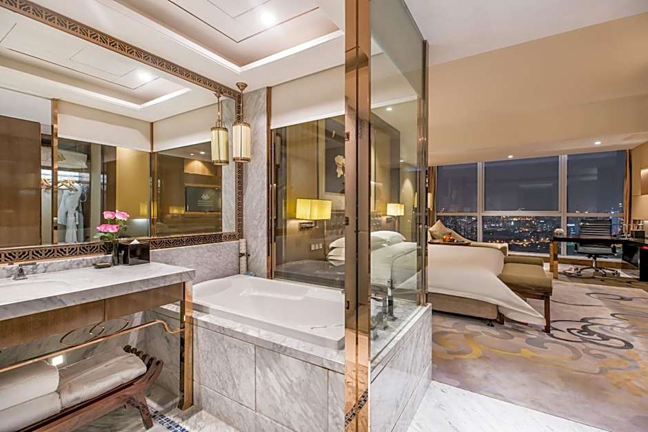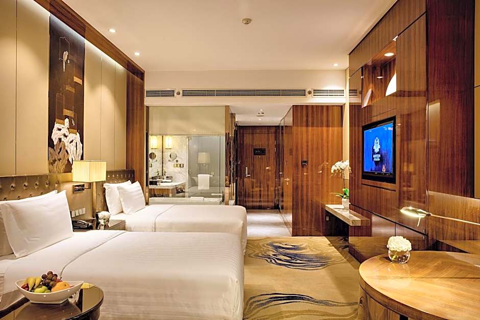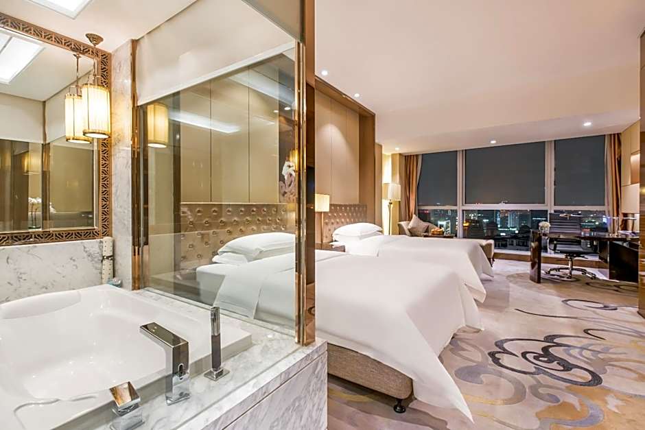 Located on floors 33-36, the Executive Room interior decoration combines simple European styles with luxury Chinese styles. The room provides a private bathroom with a separate shower cubicle and a bathtub, high-speed internet access and full WiFi coverage, a 42-Inch LED TV set (available with CNN, HBO, ESPN, DISCOVERY, Phenix Satellite TV, etc.), a mini-bar, an in-room safe deposit box, voice messaging system, a menu of 8 kinds of special pillows and 4 kinds of special mattresses, as well as 24-hour butler service; meanwhile, the guests may enjoy all the privileges on the executive floor: free breakfast in the executive lounge, 24-hour free tea drinks, 17:30-19:30 happy hours for free, free use of conference room on the executive floor for 2-4 hours (reservation required), check-out time extended to 16:00, welcome fruits and flowers, free newspapers, etc.