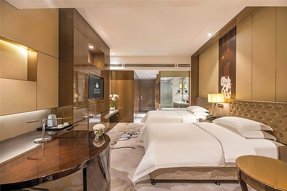 The classic room interior decoration combines simple European styles with luxury Chinese styles. This room is located above the 22nd floor. The room provides a private bathroom with a separate shower cubicle and a bathtub, high-speed internet access and full WiFi coverage, a 42-Inch LED TV set (available with CNN, HBO, ESPN, DISCOVERY, Phenix Satellite TV, etc.), a mini-bar, an in-room safe deposit box, voice messaging system, a menu of 8 kinds of special pillows and 4 kinds of special mattresses, as well as 24-hour butler service.