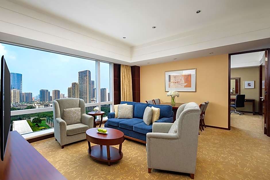 Shangri-La Chengdu is a 5-star hotel in Chengdu, China, located at 9 Binjiang Dong Road. It sits about 2mi from the city center, offering convenient access to local sights while delivering luxury comfort. The property features river view and landmark view, and has 224 reviews with a starting price of $104.