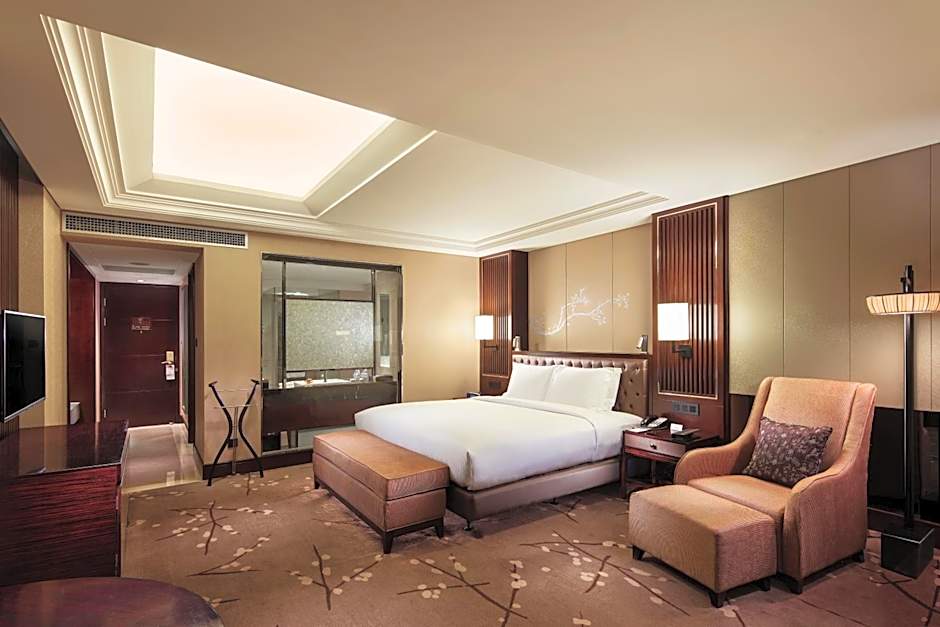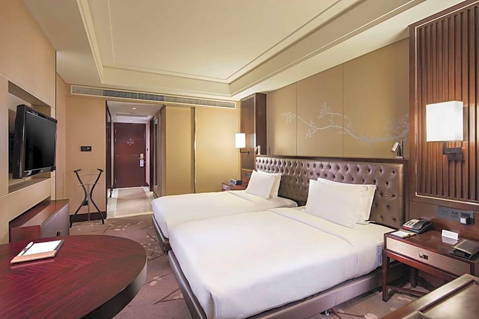 The rooms available at DoubleTree By Hilton Chongqing North include suites, double rooms, and accessible rooms. Occupancy ranges from single occupancy to accommodating up to 3 adults and 2 children. Bed sizes vary from Queen, King, to Twin beds. All rooms are non-smoking except for the Accessible King Room, which allows smoking. Room sizes range from 355 sqft to 592 sqft.