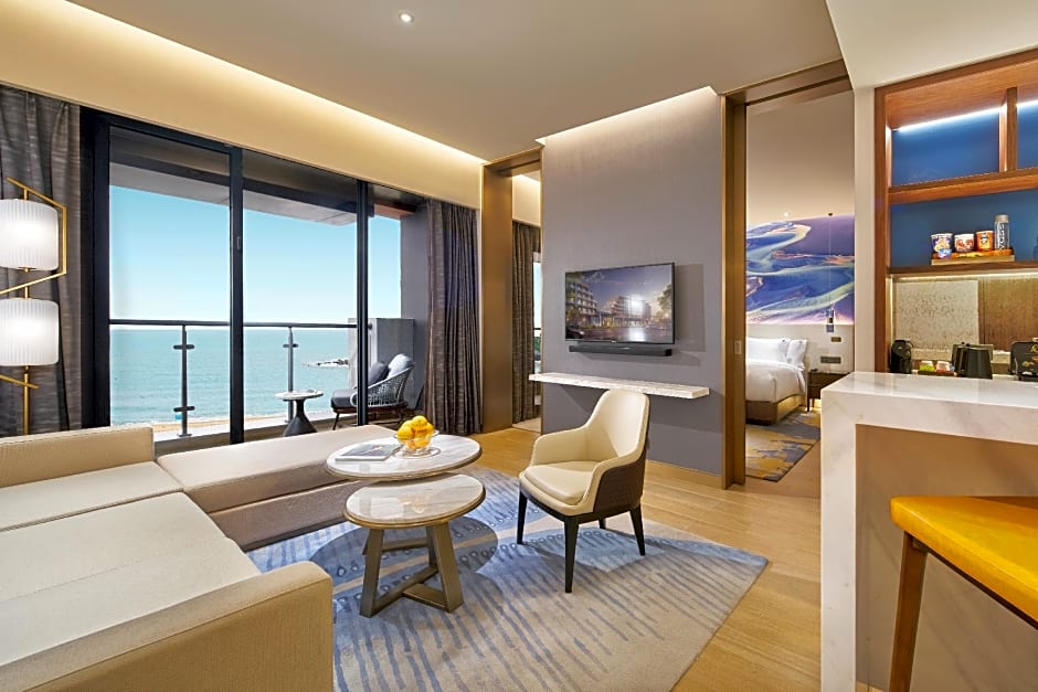 Positioned on a sun-kissed stretch of Dalian’s Jinzhou District, this 5-star beachfront escape blends rock-star energy with sea breeze for a playful, upscale vibe. On-site dining runs from Sessions 西餐厅, a modern, romantic venue serving American, pizza, seafood, steakhouse, and Asian flavors, to 格林尼治大堂吧, also framed in a modern romantic setting for cocktails and conversations.