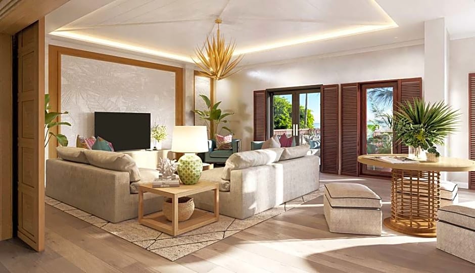 DELUXE FAMILY SUITE, LARGE BALCONY OVERLOOKS THE GARDEN AND OCEAN, SPACIOUS SUITE WITH SEPARATE LIVING AREA