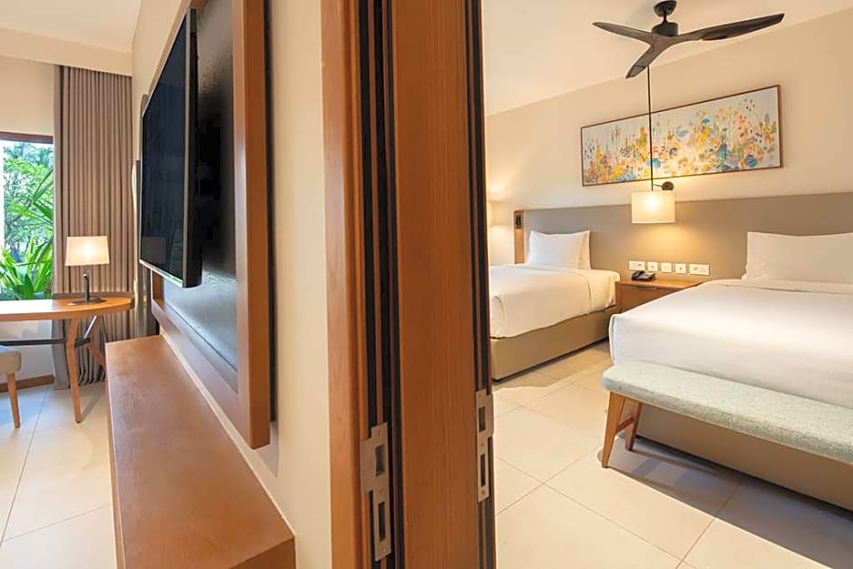 FAMILY CONNECTING ROOM, 2 DLX ROOMS CONNECTED 1 KING BED AND 2 TWIN, MODERN DECOR WITH A MAURITIAN TOUCH.
