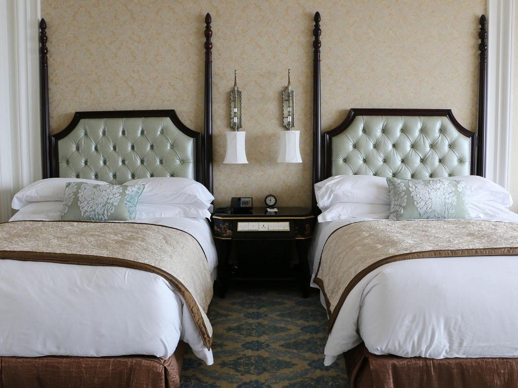The Castle Hotel, a Luxury Collection Hotel in Dalian, offers a variety of rooms including Grand Twin Rooms, Deluxe Ocean View Suites, Deluxe King Rooms, Family Suites, Deluxe Twin Rooms with Ocean View, and Deluxe Twin Rooms with Mountain View. All rooms are non-smoking and can accommodate 2 adults and 1 child. The beds range from twin beds to king size beds, and the room sizes vary between 646 sqft and 915 sqft.