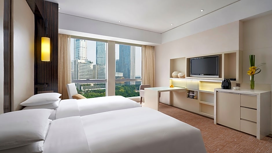 The 45-square-yard room offers stylish décor and complementary modern technology. Features beautiful Huacheng Square garden view. Access to Grand Club Lounge is available. Guests can enjoy the following benefits: - Complimentary light breakfast served in the Grand Club - All-day coffee, tea, soft drinks and light refreshments - Complimentary evening drinks and hors d’oeuvres - Complimentary Grand Club meeting room usage for 1 hour per stay (charge applies for every additional hour) - Complimentary pressing of up to 2 garments per person per day - Free local calls - Access to magazines and newspapers - Concierge services with exclusive check-in and check-out service in the Grand Club Lounge
