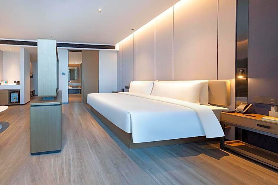 When it’s time to relax, head to your stylish room equipped with free toiletries and enjoy the beautiful views overlooking the city or nearby attractions. The contemporary decor and thoughtful touches create a cozy retreat, perfect for recharging before heading out to discover more. With prices starting as low as 350 CNY per night, you can indulge in all the comforts of a 5-star stay without breaking the bank, making it an excellent choice for both spontaneous getaways and longer vacations.