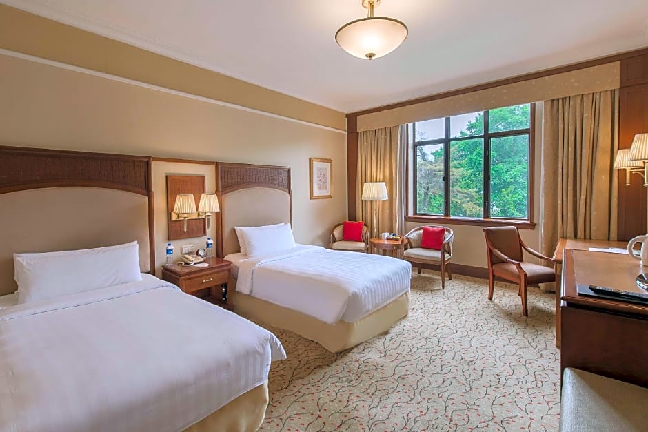 This twin room features a balcony, satellite TV and bathrobe. The room enjoys Executive benefits including: - daily breakfasts - all-day drinks - snacks and evening cocktail - use of meeting room for 2 hours daily - personalized check-in and check-out in the Horizon Club lounge